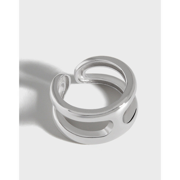 design minimalist wide hollowed silver adjustable ring